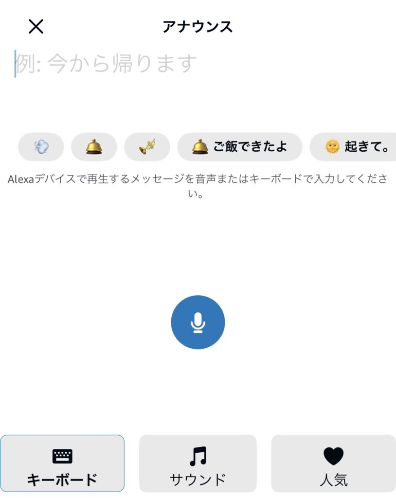 Alexaアプリを使えば「声」での指示だけでなく「文章」「サウンド」などでアナウンスすることが可能です。