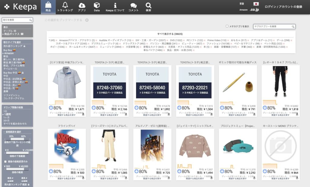 そこで登場するのが、価格の履歴(過去の推移)を可視化し、トラッカー機能や通知機能も備えた「Keepa(キーパ)」というツールです。
