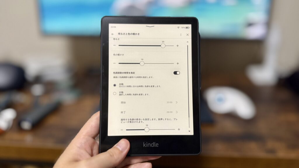 Paperwhite」は明るさ調整、暖色(色温度)調整ができます。